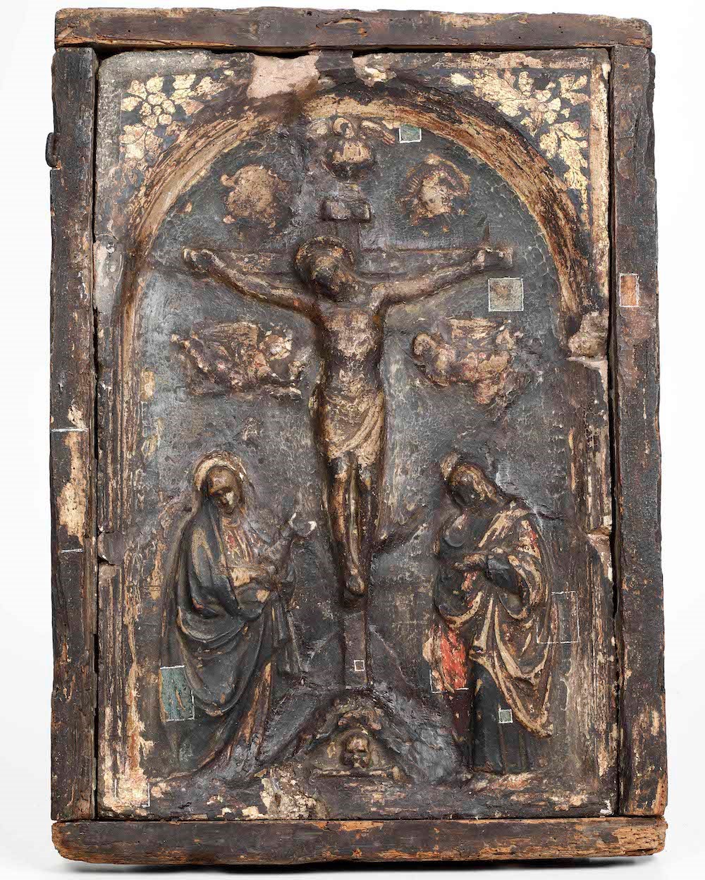 Benedetto da Maiano (1442 - 1497) bottega di. Crocifissione stucco in origine dorato [..]