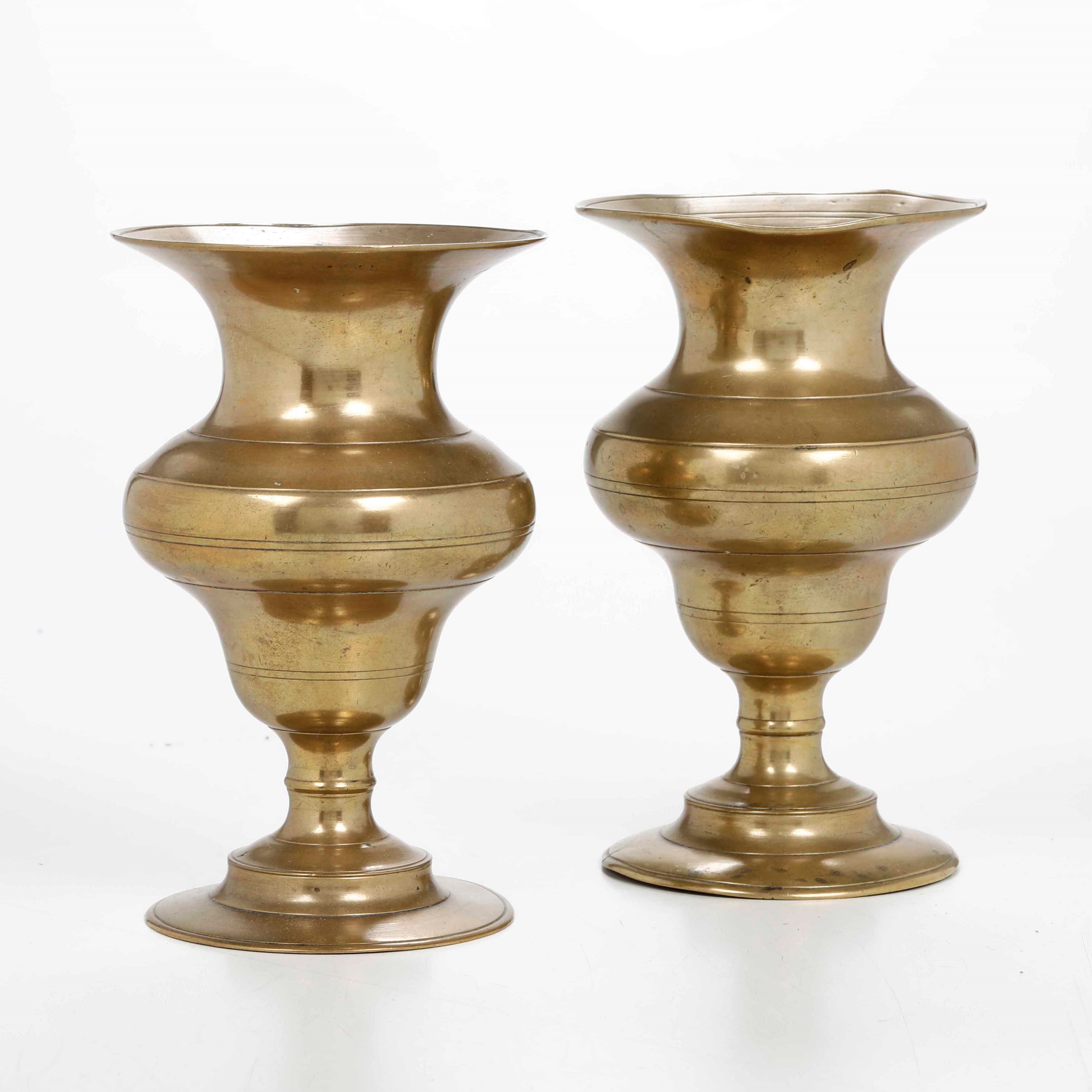 Coppia di antiche anforette in ottone, probabile XVIII secolo
