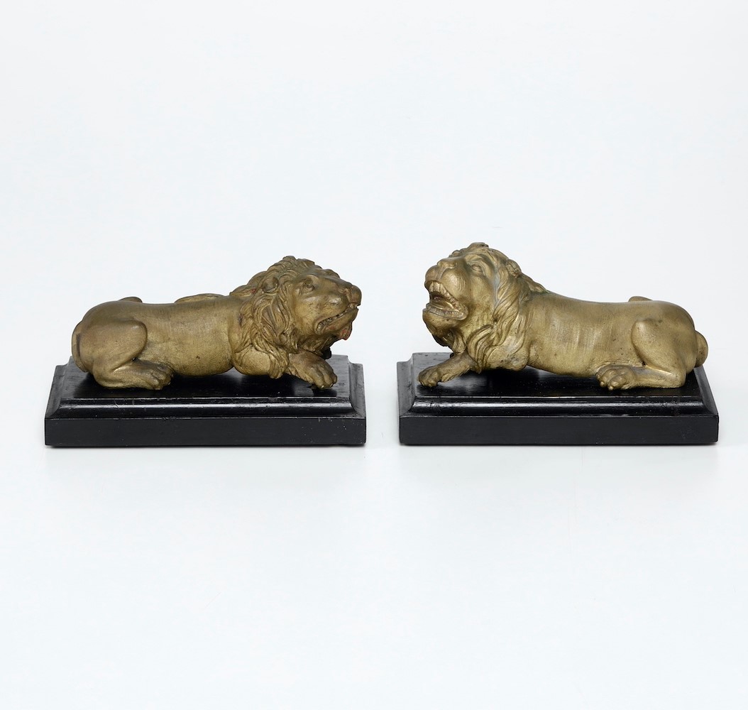 Coppia di leoni in bronzo fuso e dorato. Fonditore del XVIII secolo