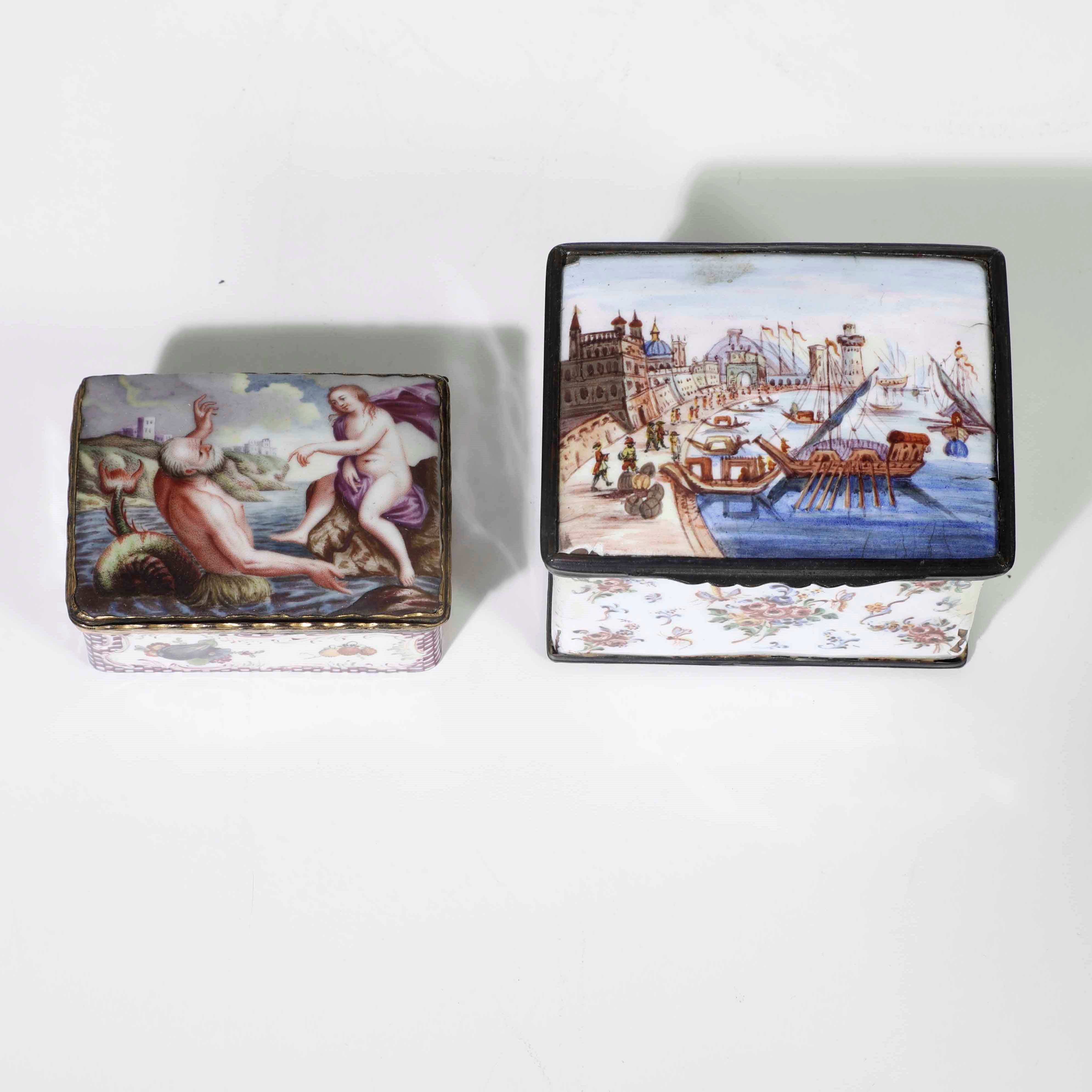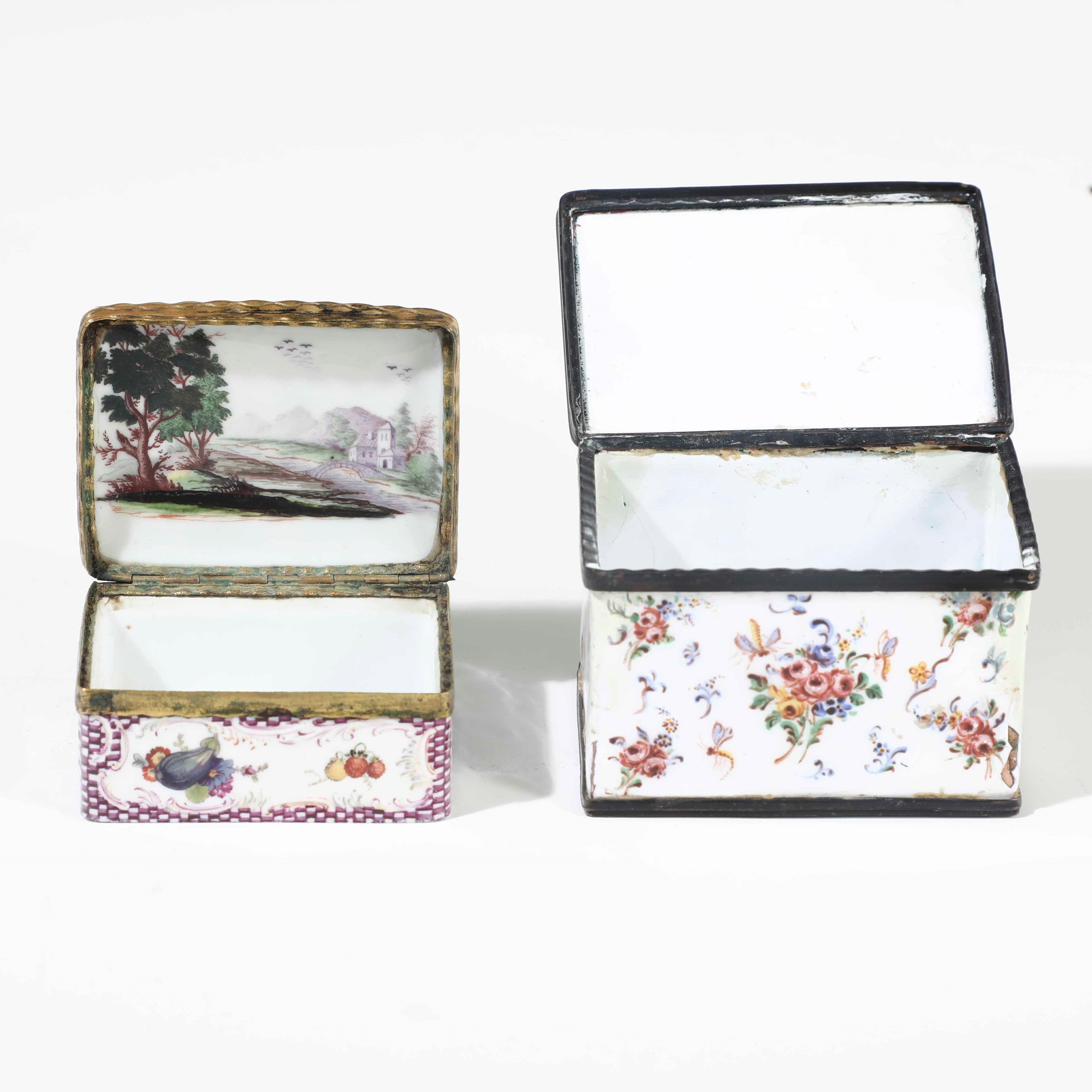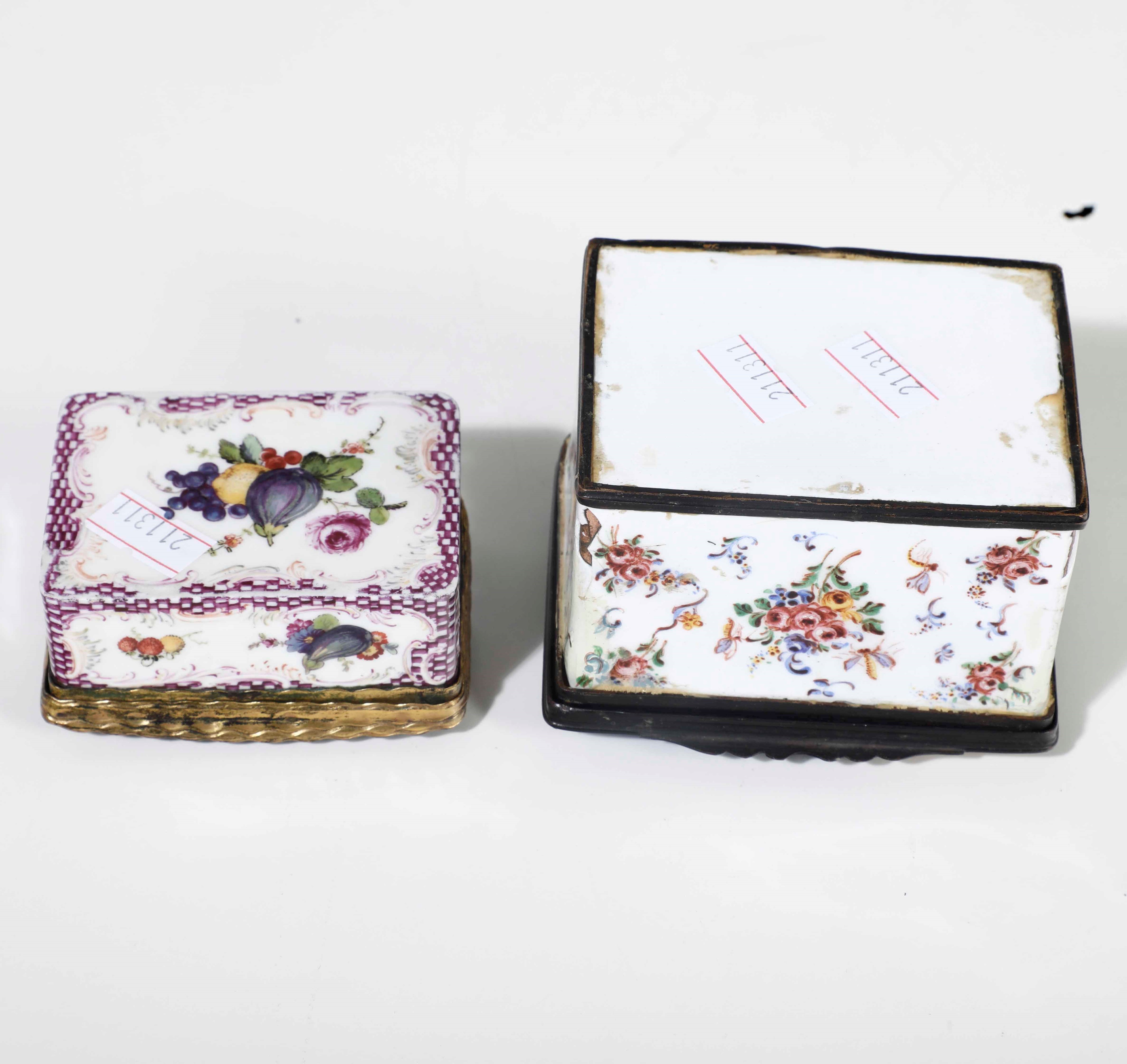 Due scatole in smalto dipinto e metallo. Francia o Germania XVIII.XIX secolo