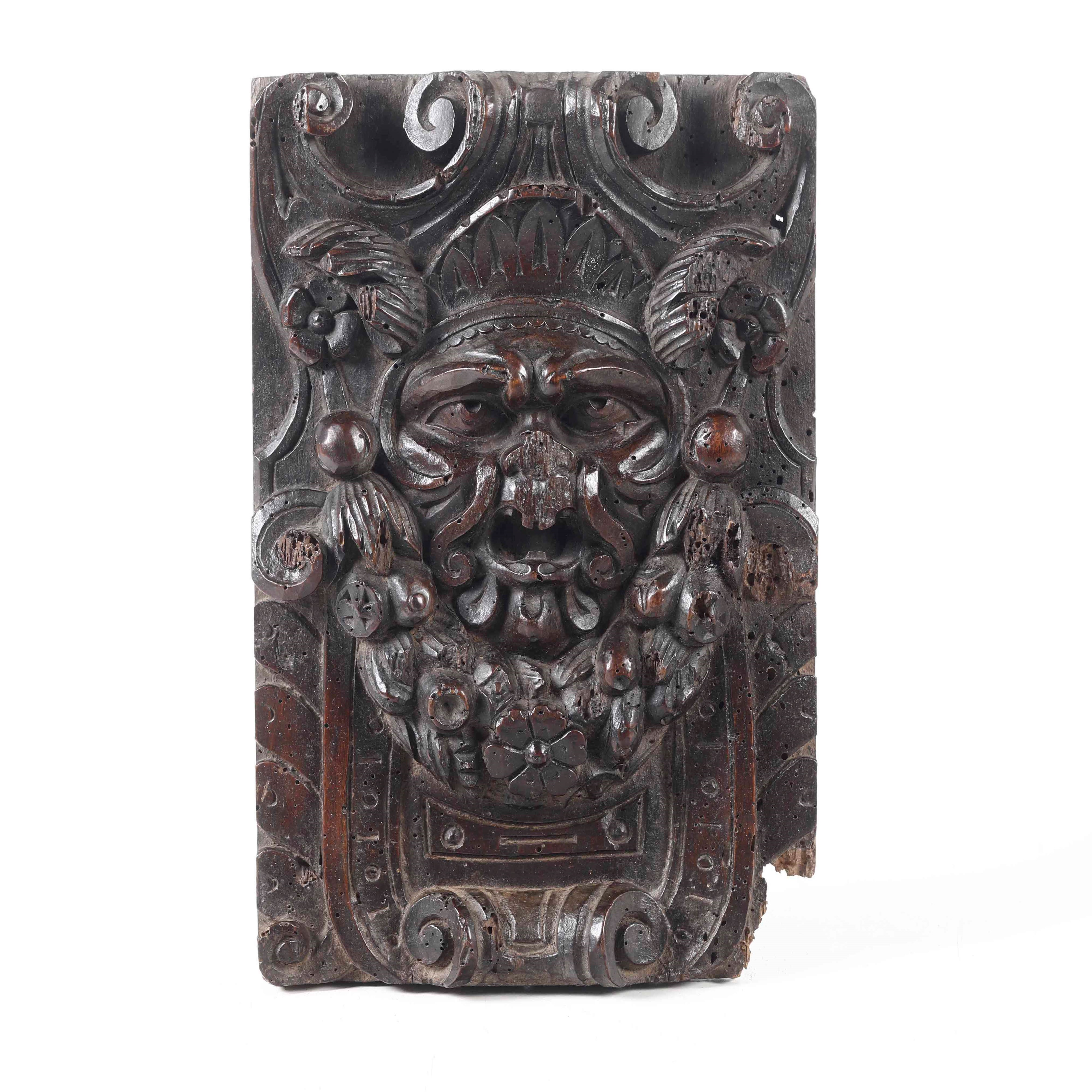Frammento ligneo in noce, mascherone con ghirlanda. Alto Lazio, verso la fine del [..]