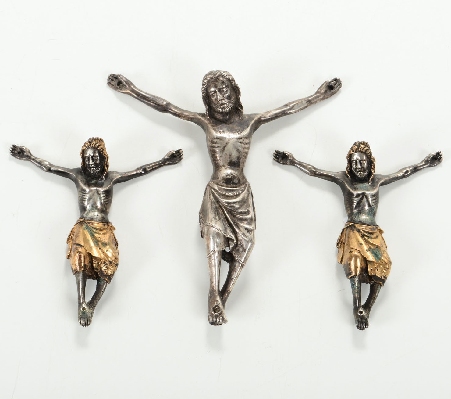 Gruppo di tre Corpus Christi in stile gotico in metallo argentato e dorato, probabile [..]