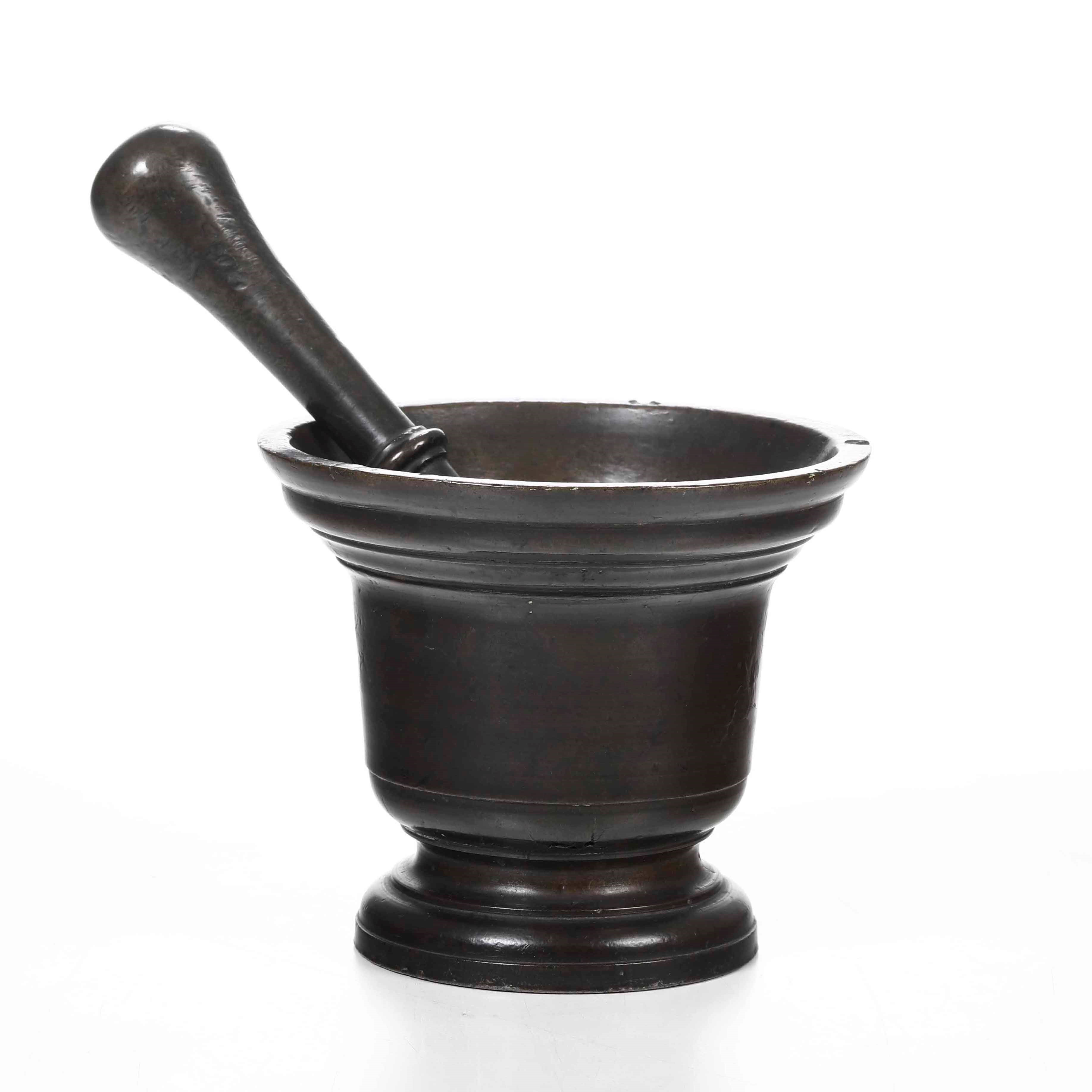 Mortaio a campana con il pestello in bronzo a patina bruna. Toscana, fine XVII s [..]