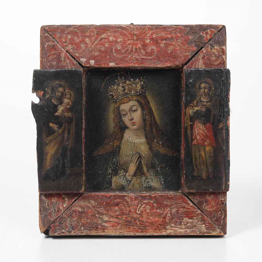 Piccolo altarolo ligneo da viaggio apribile a due sportello. Messico, XVIII sec [..]