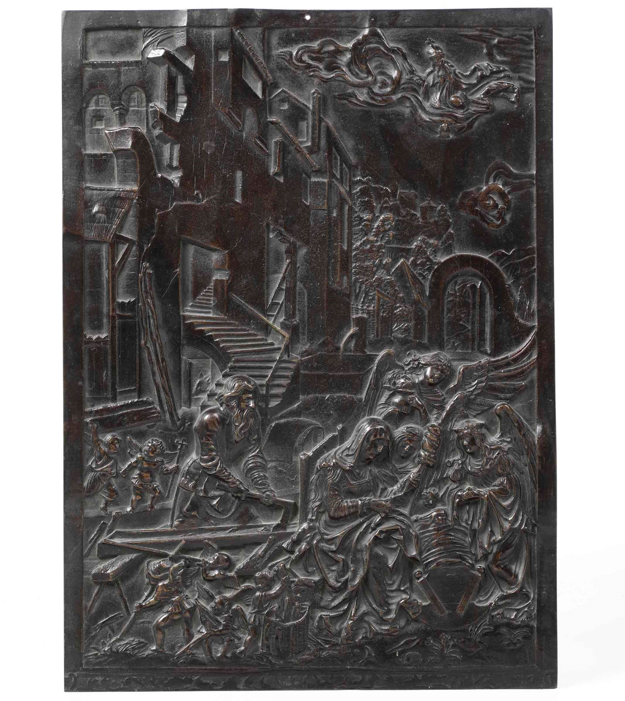 Sacra Famiglia. Placca in bronzo fuso e cesellato. Fonditore tedesco del XVII se [..]