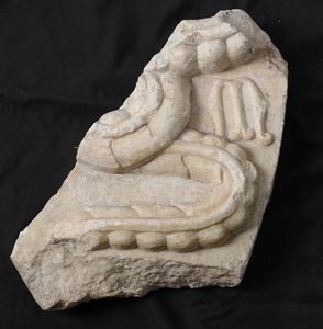 Scultore del XV secolo. Frammento di stemma con Biscione Visconteo, marmo di Car [..]
