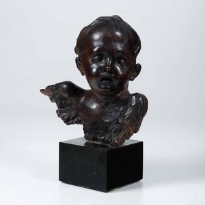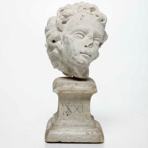 Testa di fanciullo. Pietra scolpita. Arte barocca del XVII-XVIII secolo