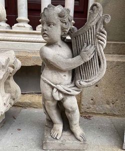 Putto con cetra. Pietra scolpita. Arte barocca italiana del XVIII secolo