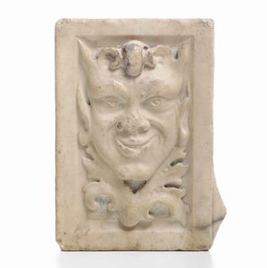 Mascherone con figura di satiro in marmo. XVIII-XIX secolo