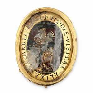 La Visitazione. Bronzo dorato e cristallo di Rocca e vetro dipinto. Oreficeria lombarda [..]