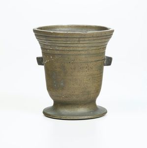 Mortaio a campana con il pestello in bronzo a patina bruna. Toscana, fine XVII s [..]