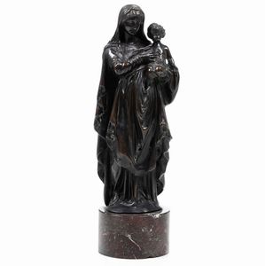 Vergine con bambino. Antico bronzo patinato su base in marmo. Fonditore del XVII-XVIII [..]