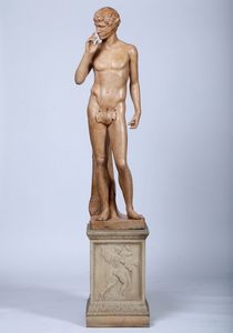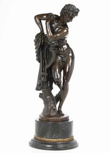 Apollo, da Giambologna. Bronzo patinato su base in marmo nero. XIX-XX secolo
