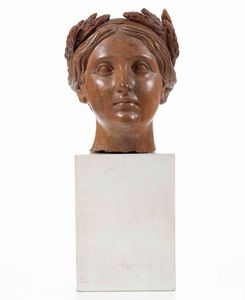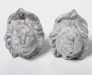 Coppia di teste di putti in terracotta. Plasticatore del XIX secolo