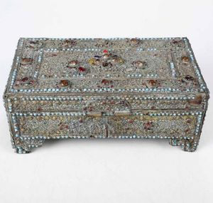 Cofanetto in rame sbalzato e pietre dure. Arte orientale del XVIII-XIX secolo