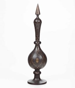 Fiasca in bronzo fuso, cesellato e ageminato. Turchia XIX secolo