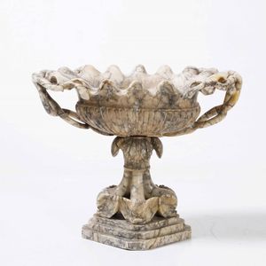 Coppa biansata in bronzo dorato con mascheroni. Fonditore del XIX secolo