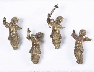Quattro angioletti in bronzo dorato. Fonditore del XVIII-XIX secolo