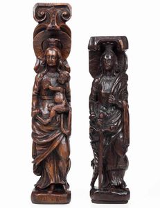 Santa Caterina e Vergine col Bambino due sculture in rovere, Fiandre XVII secolo