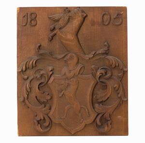 Pannello in legno scolpito con stemma