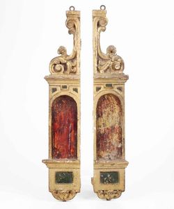Coppia di mensole in legno dorato e dipinto. XVII-XVIII secolo
