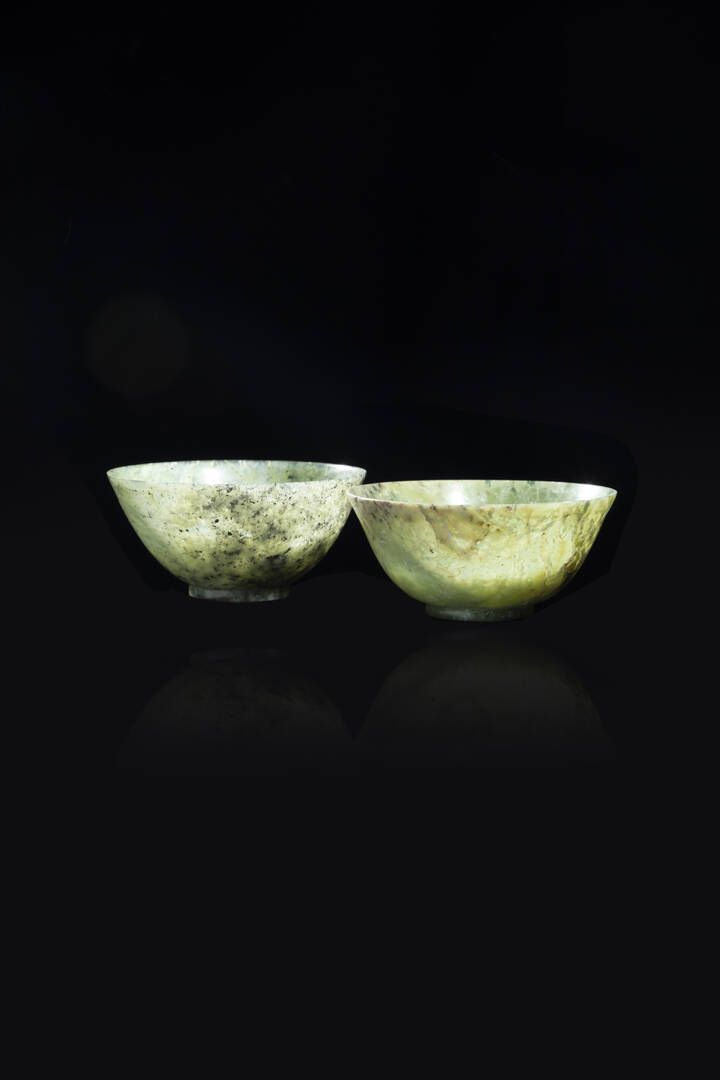 Coppia di bowl in giadeite Cina Repubblica XX sec H cm 4.5 Diam cm 10