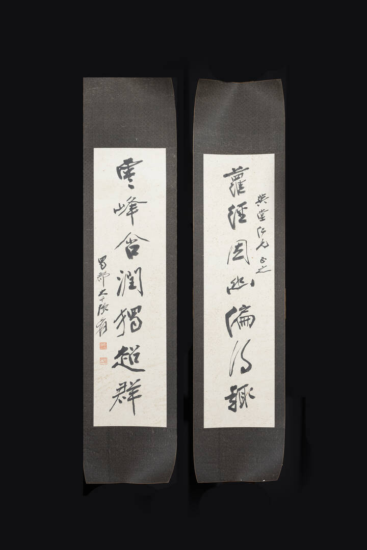 Coppia di dipinti su pergamena con iscrizioni Cina Repubblica XX sec. H cm 20x76 dipinto H cm 111x26 scroll