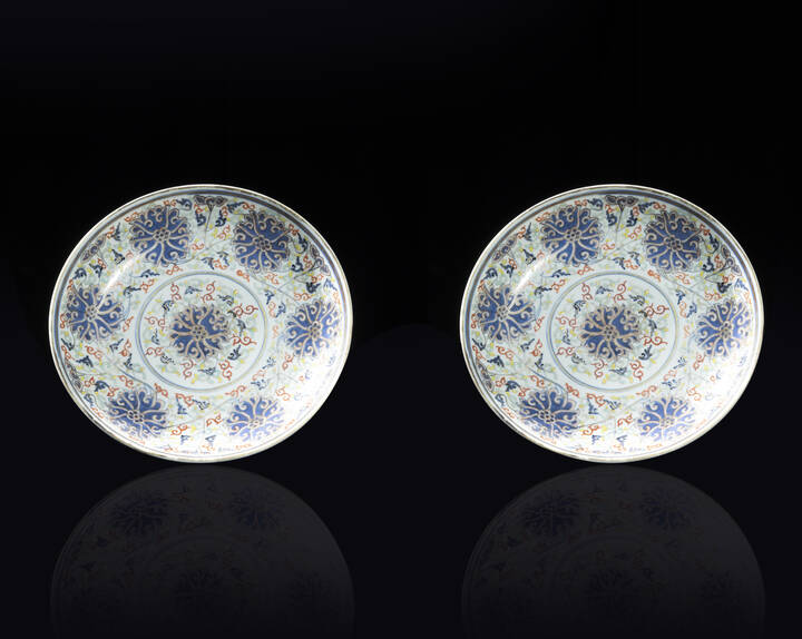 Coppia di piatti in porcellana Famiglia Rosa Cina dinastia Qing epoca Guangxu [..]