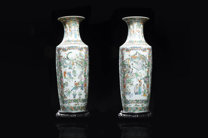 Coppia di vasi in porcellana Famiglia Verde dipinti con scene di vita quotidiana [..]