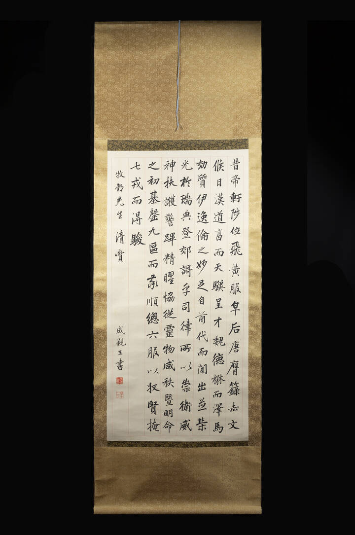 Dipinto su pergamena con iscrizioni Cina Repubblica XX sec. H cm 122x59 dipinto H cm 128x70 scroll