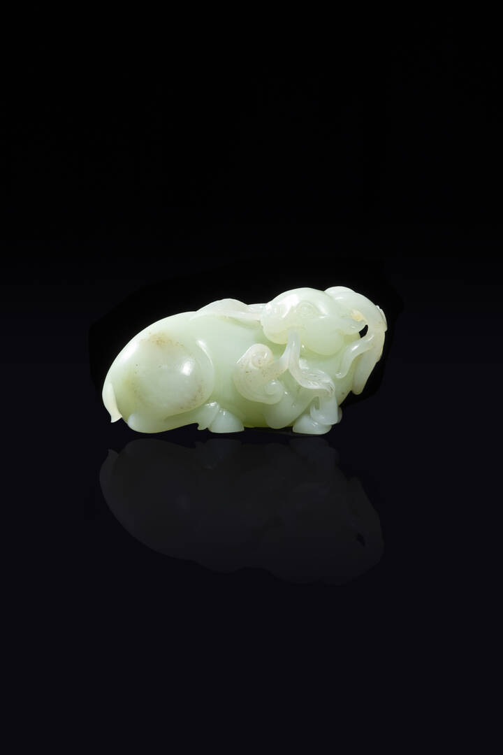 Figura di ariete accovacciato scolpito in giada bianca celadon Cina dinastia [..]