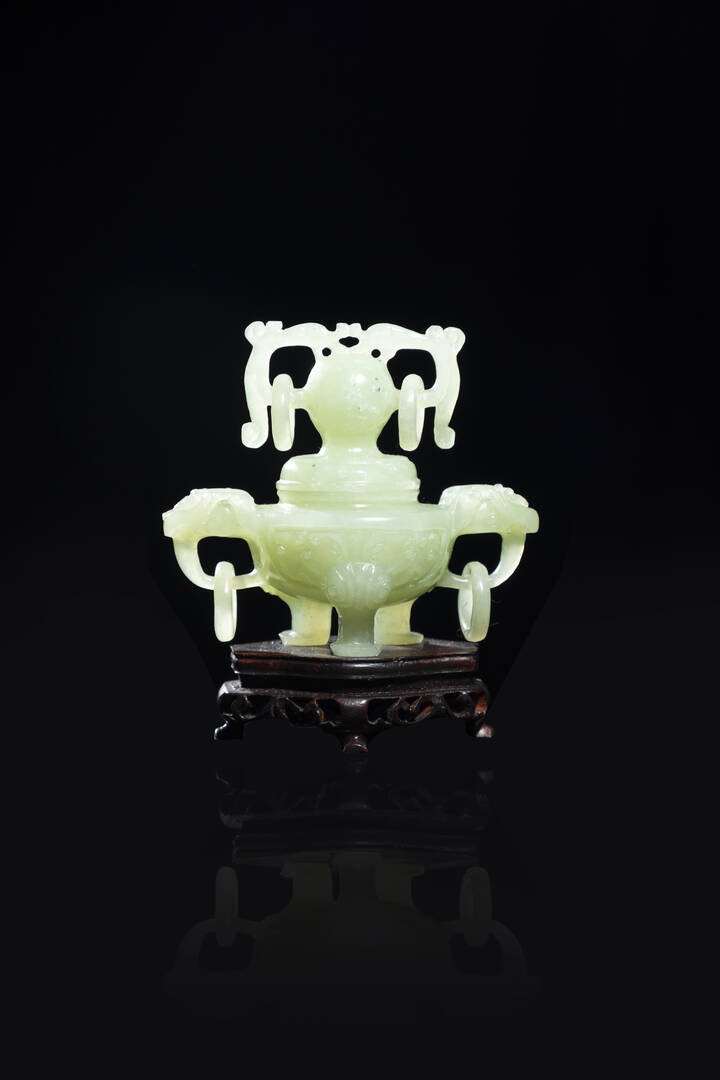 Incensiere in giadeite Cina Repubblica XX sec H cm 12.5x14