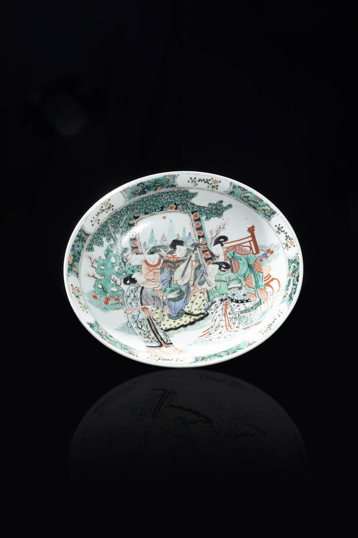 Piatto in porcellana Famiglia Verde dipinto con figure Cina dinastia Qing XIX [..]