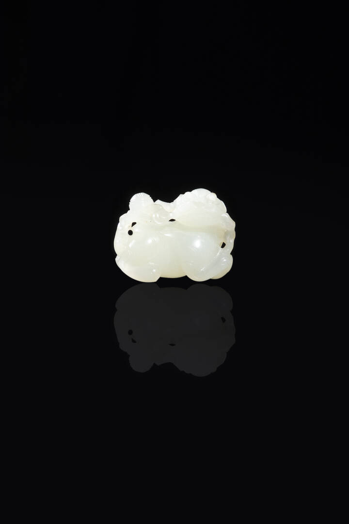 Piccola figura di cane in giada bianca Cina dinastia Qing XIX sec H cm 3 5x4 5