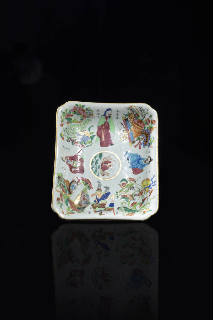 Piccolo vassoio in porcellana Famiglia Rosa dipinto con figure Cina dinastia Qing [..]