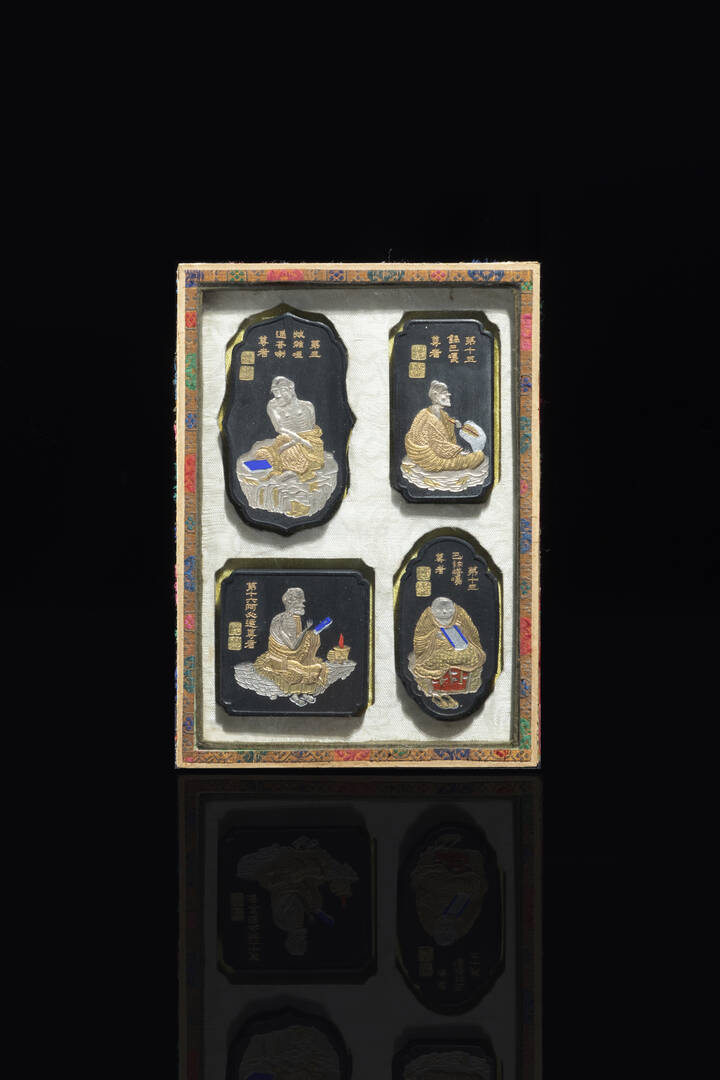 Quattro pietre da scrittura entro cornice Cina Repubblica XX sec. H cm 19 5x14 [..]
