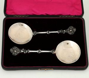 Coppia di cucchiai in argento. Bollo della città di Londra per l'anno 1899