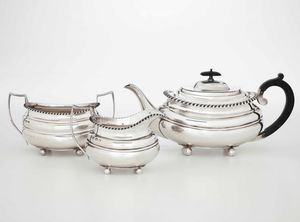 Teiera, lattiera e biscottiera. Argento fuso, sbalzato e cesellato. Bollo della [..]