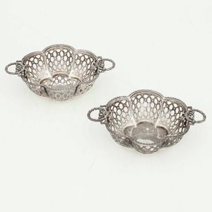 Copppia di piccoli cestini. Argento fuso e traforato. Birmingham XX secolo