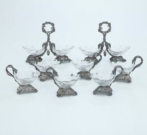 Set di saliere composto da due saliere grandi e sei piccole, base in argento a grappolo [..]