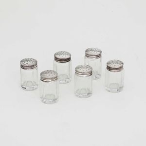Set di porta sale e pepe in argento sterling e vetro. Argenteria del XX secolo
