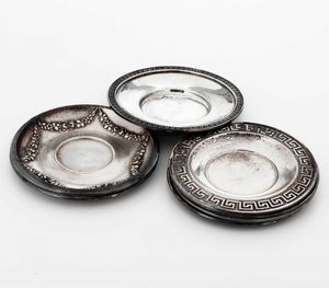 Un piattino in argento e sei in metallo argentato (Alpacca). Manifatture del XX [..]