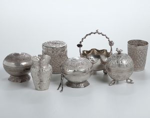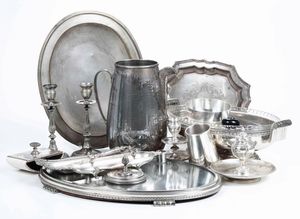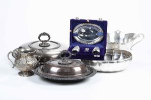 Lotto di oggetti in argento e metallo argentato. Varie manifatture del XX secolo [..]