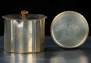 Scatola circolare in argento 925 fuso e cesellato. Argenteria fiorentina del XX [..]