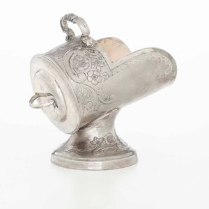 Cioccolatiera in argento fuso e cesellato. Argenteria del XX secolo