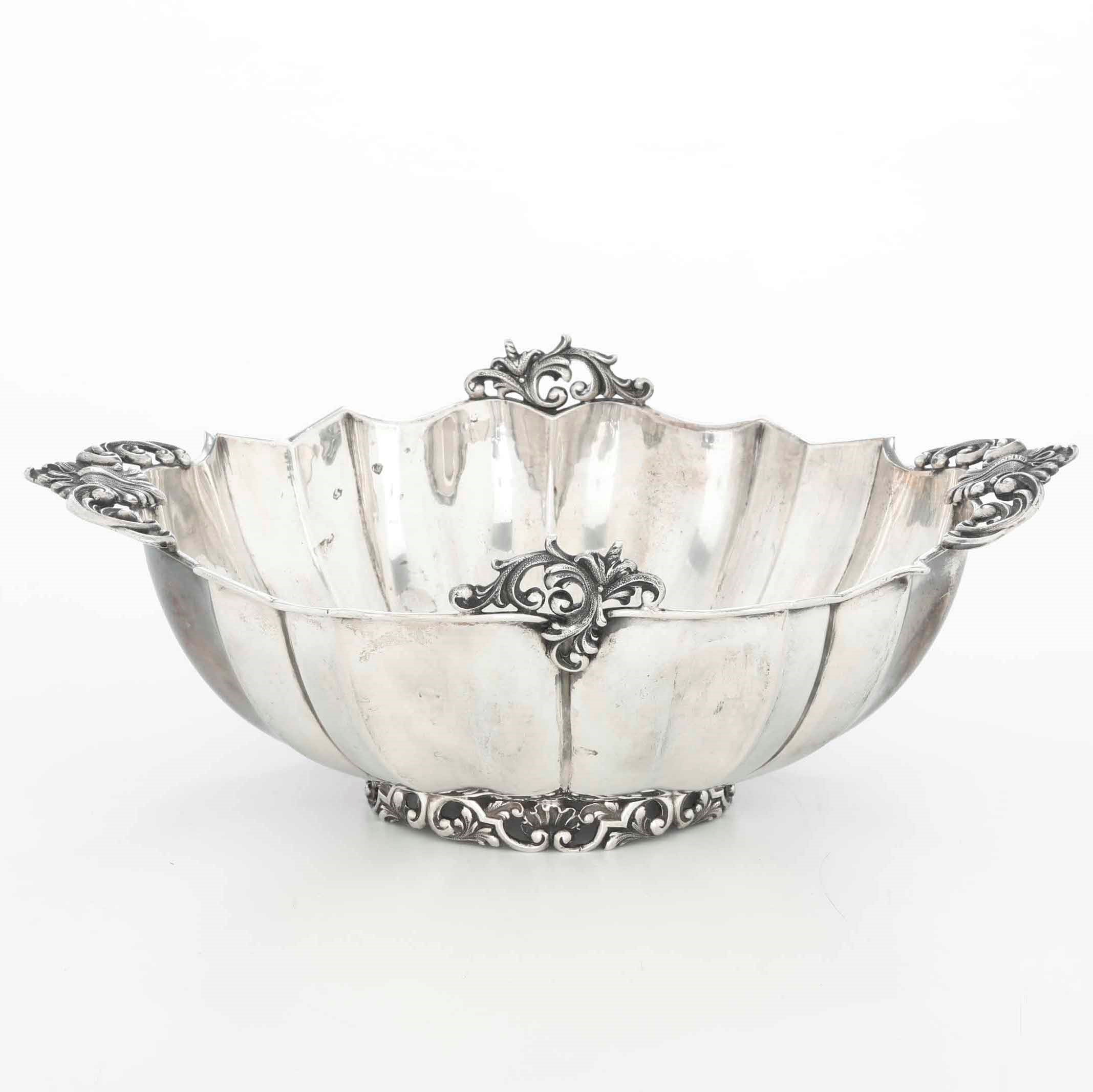 Centrotavola in argento con bordo costolato. Argenteria artistica italiana del XX [..]