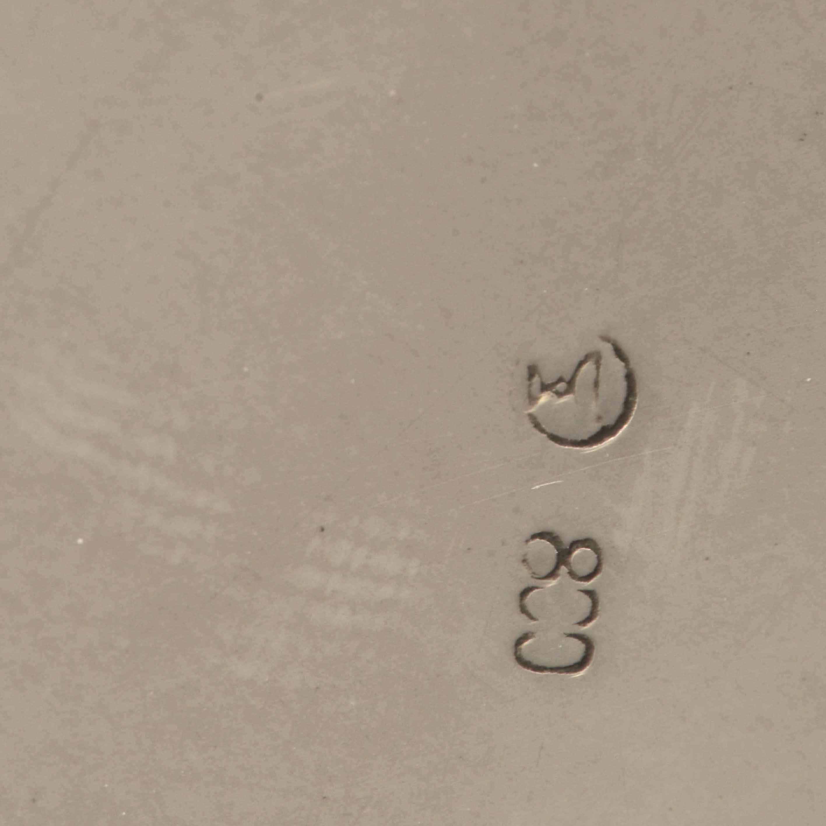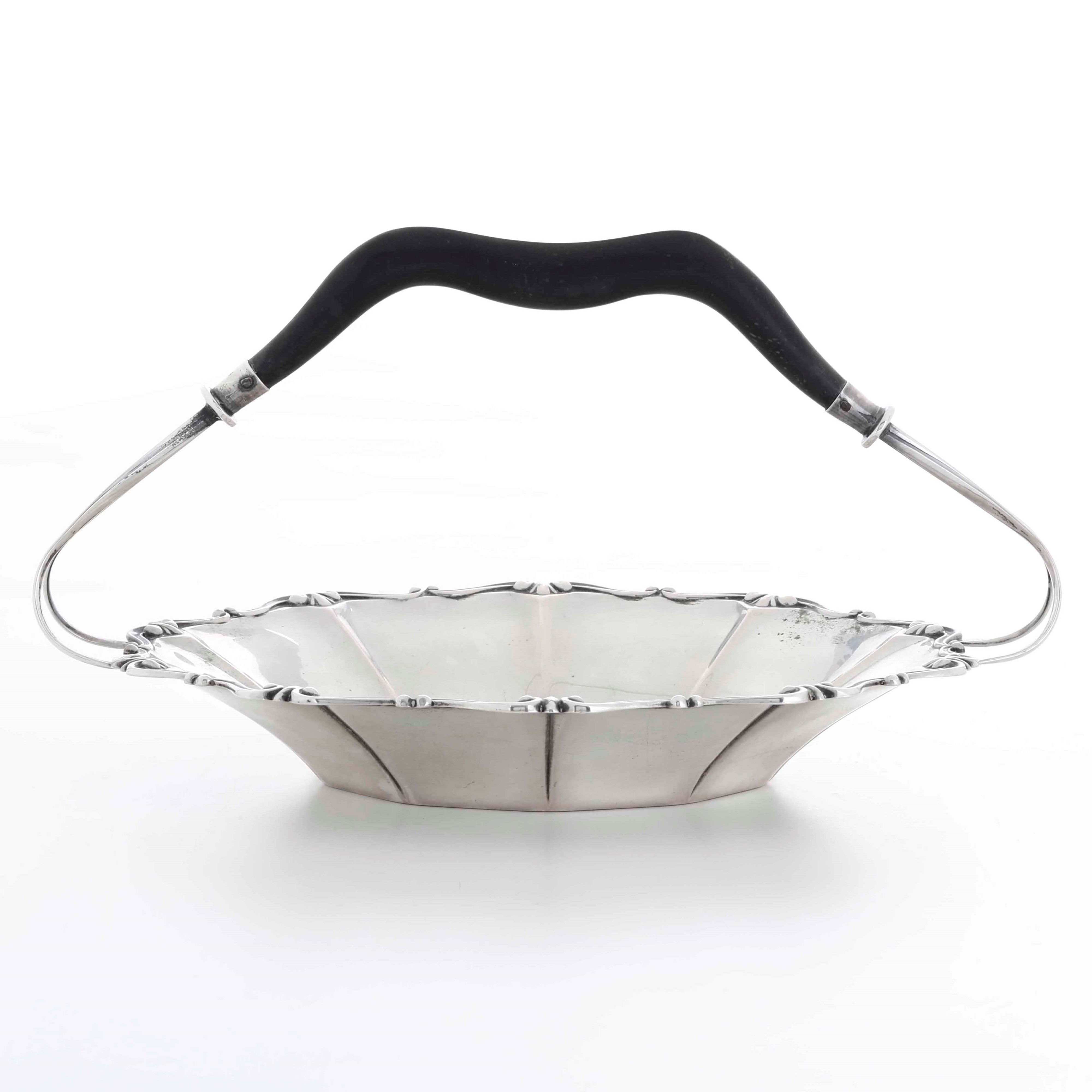 Cestino. Argento fuso e sagomato, manico ad arco in legno ebanizzato. Argenteria [..]