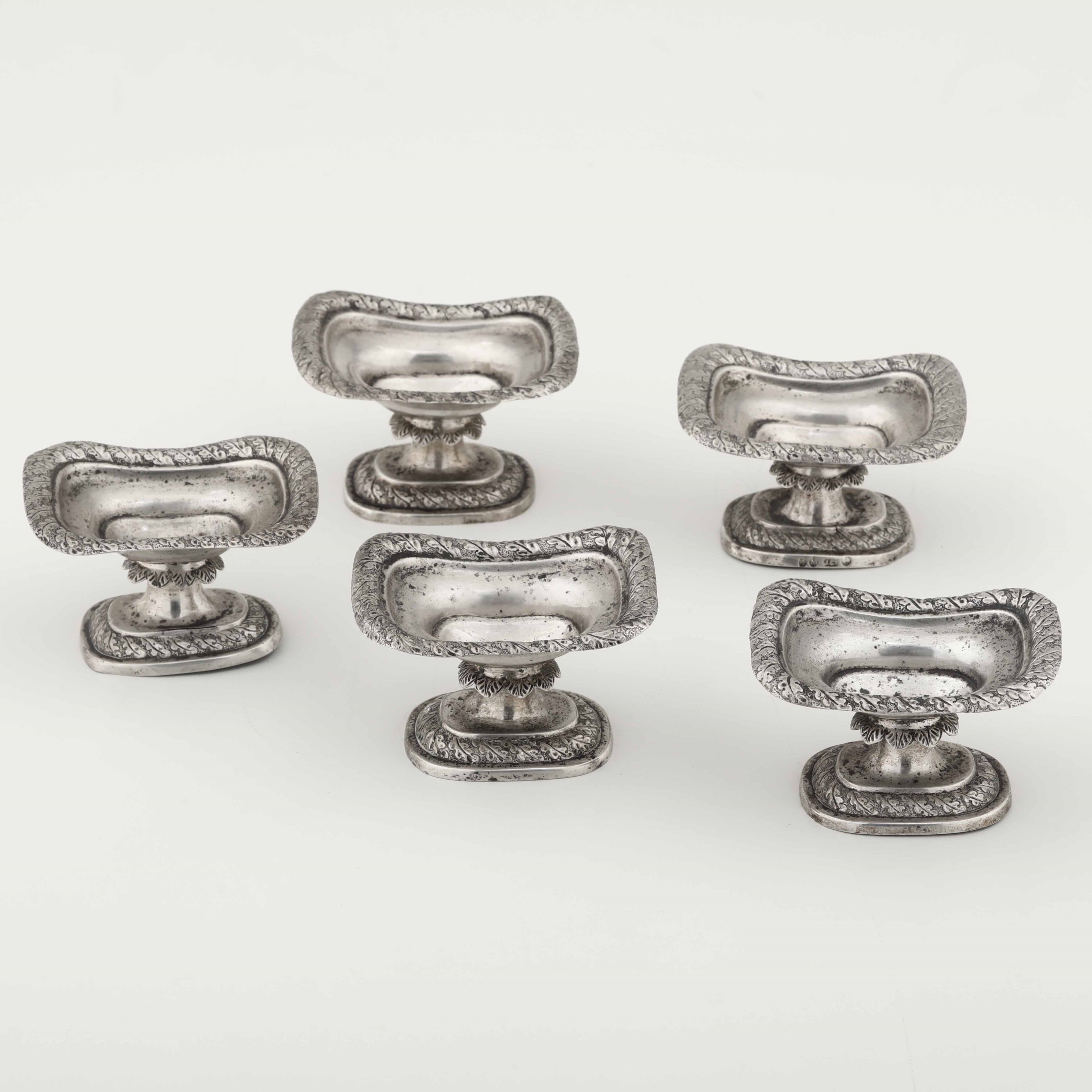 Cinque saliere in argento sbalzato e cesellato. Danimarca (?) XIX secolo