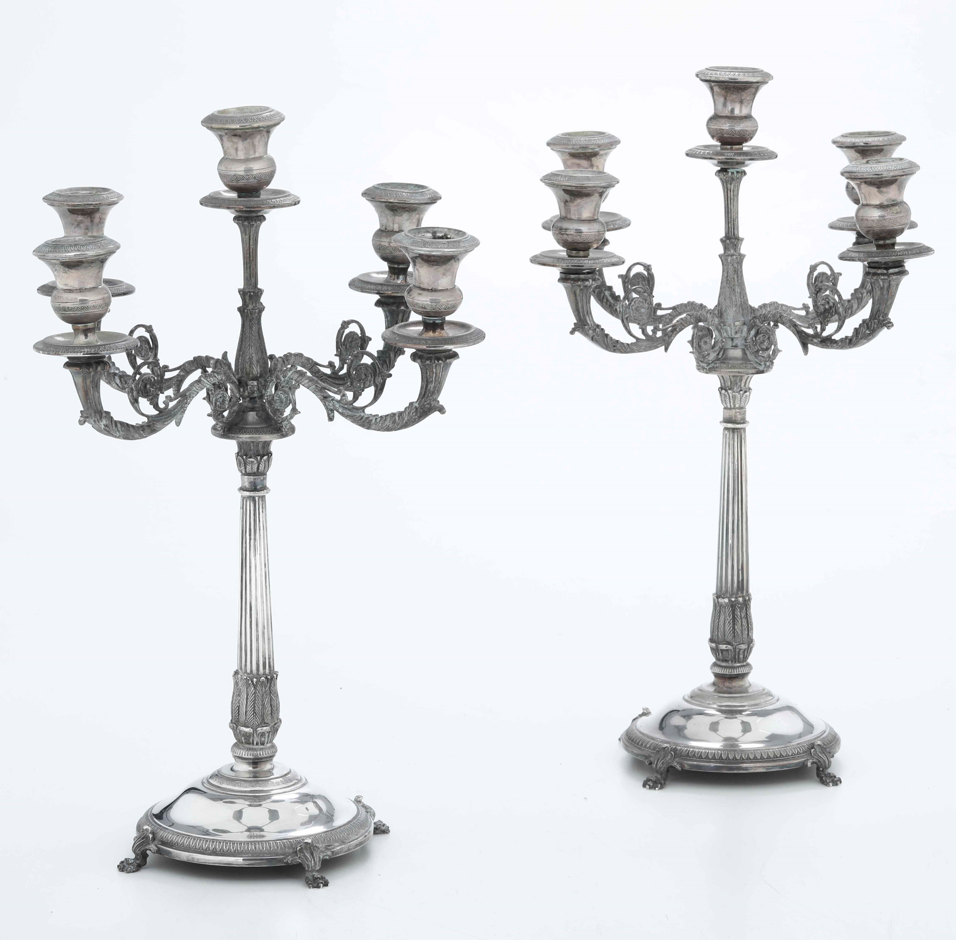 Coppia di candelabri in argento fuso, sbalzato e cesellato. Argenteria italiana [..]
