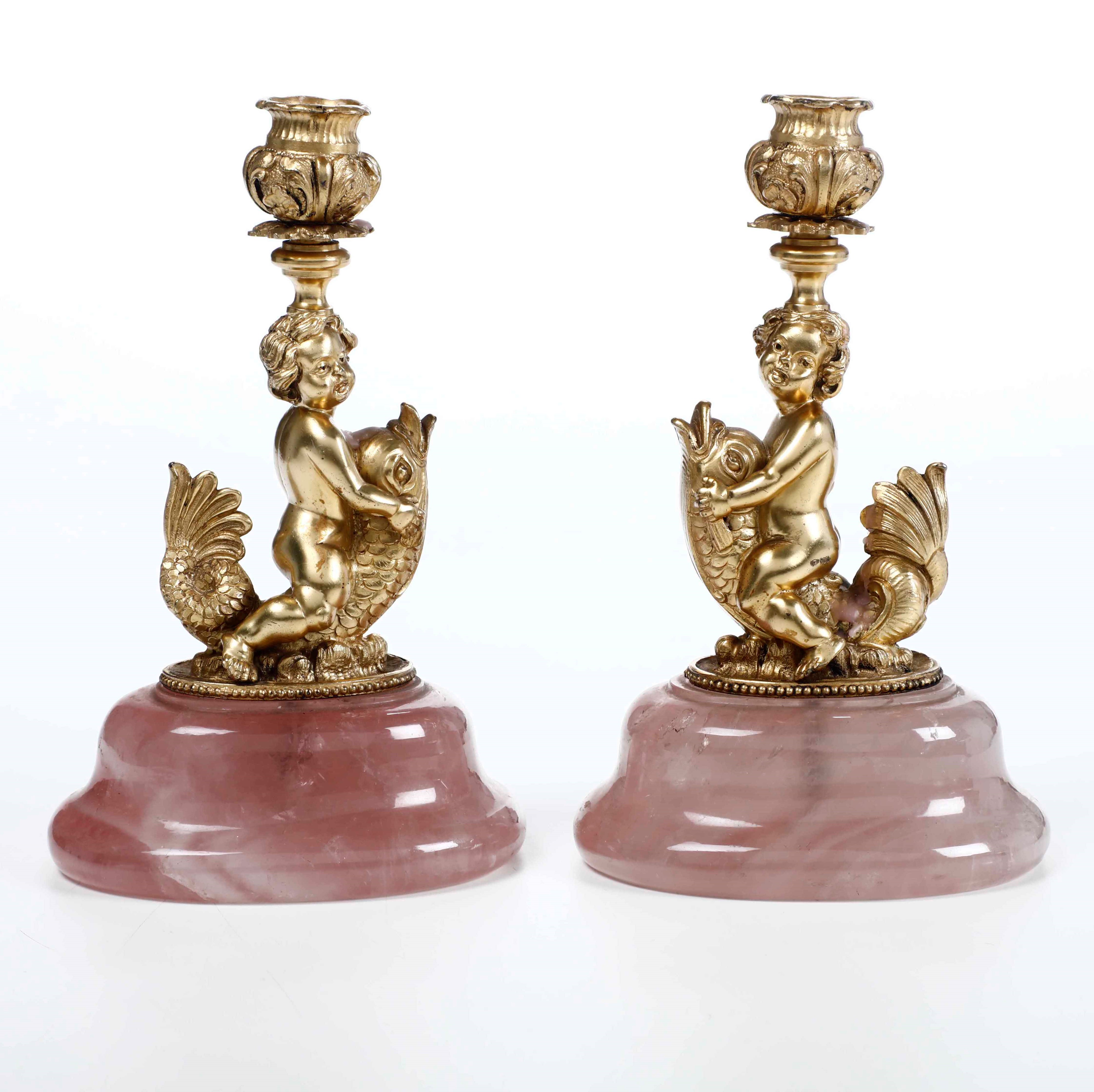 Coppia di candelieri in argento fuso, cesellato e dorato. Argenteria artistica milanese [..]
